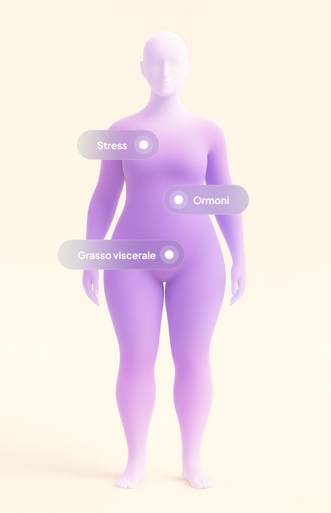 Accompagna dal punto di vista medico la perdita di peso e migliora le aree che stressano maggiormente le donne dal punto di vista ormonale e metabolico.